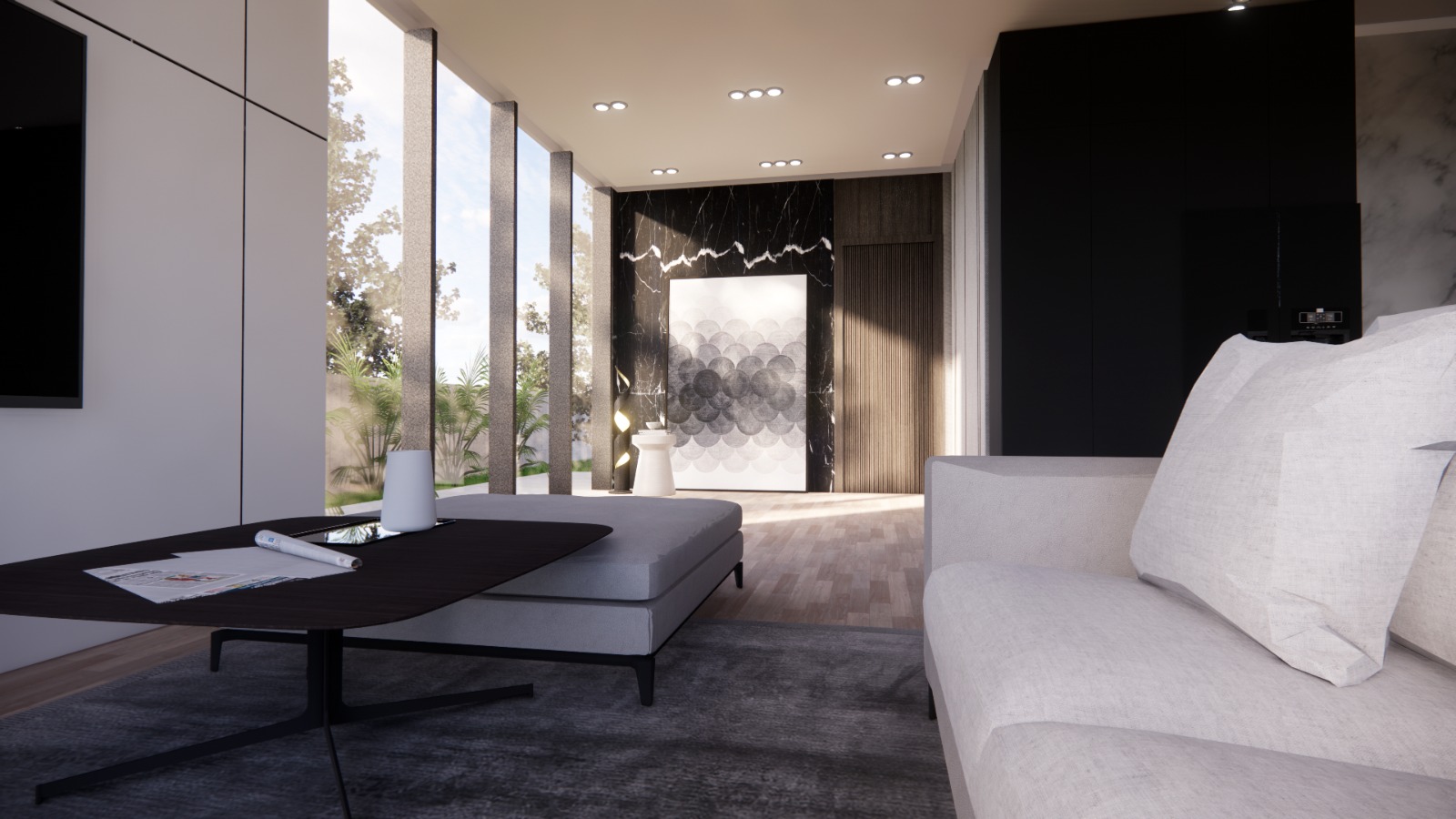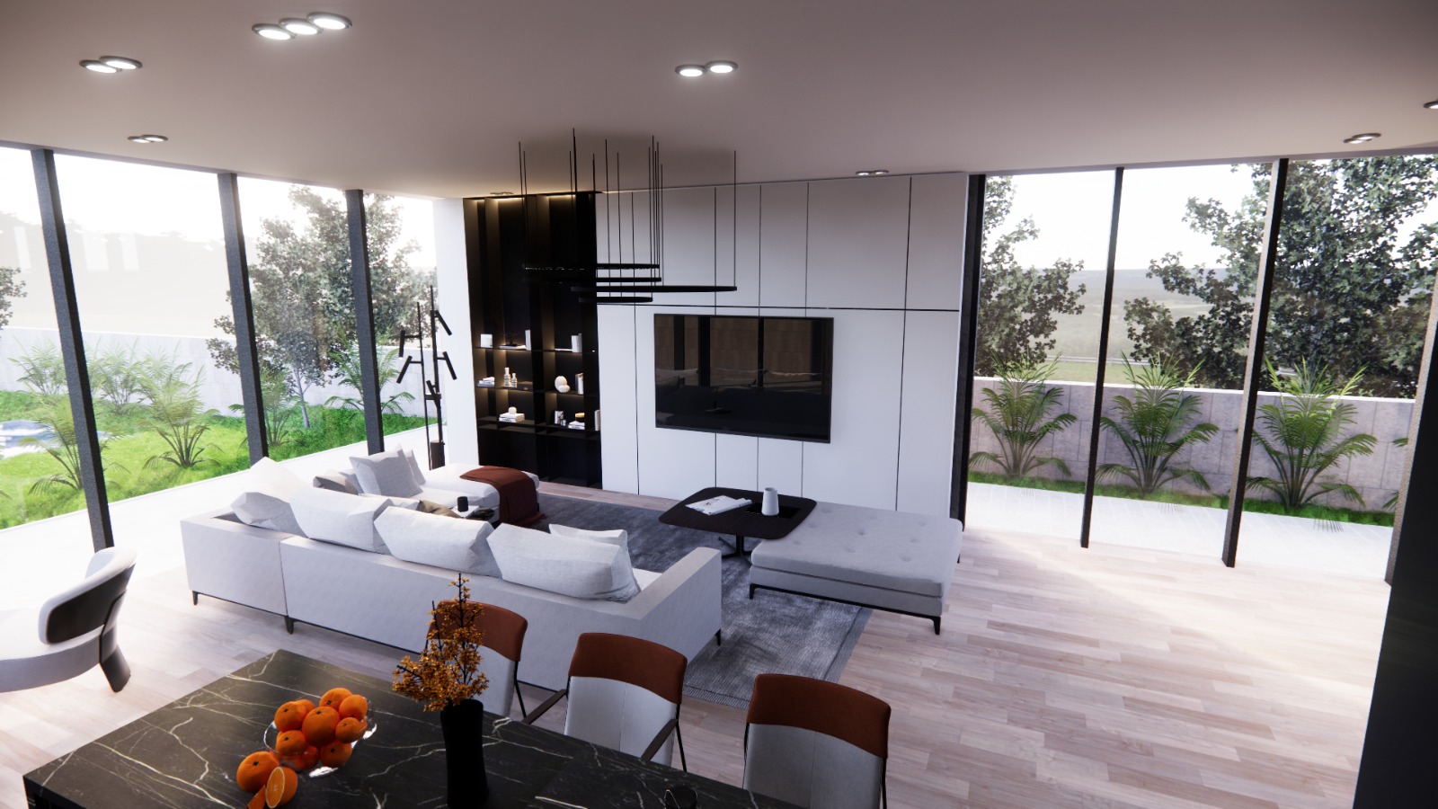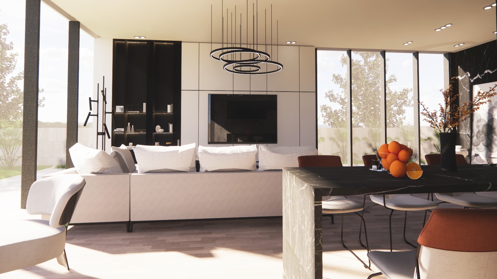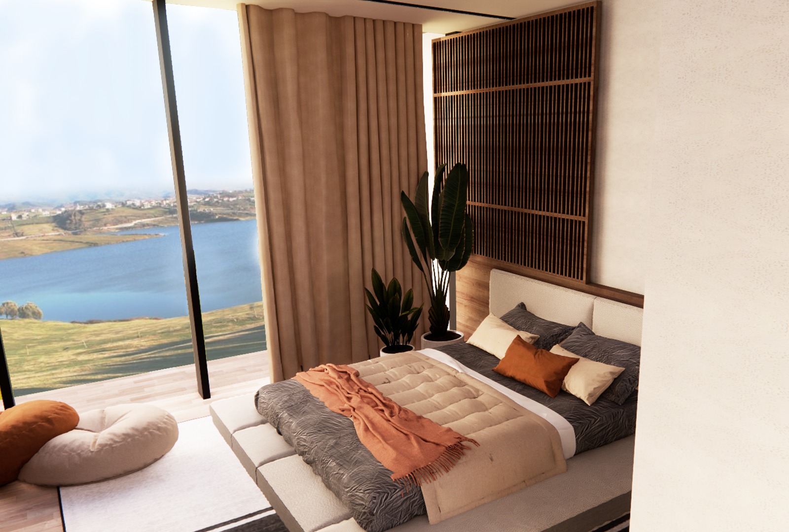 Villa D01, situated near the serene Farkes Lake, offers an ambiance that is as luxurious as it is harmonious. The design seamlessly merges with the surrounding landscape, allowing for a tranquil and peaceful atmosphere within its interiors. The interior boasts a modern style, is spacious, and is dominated by soft, subtle colors. Overall, a minimalist style has been adopted, from the clean lines of the furniture to the simplicity of the lighting and walls, creating a serene and refined living space.